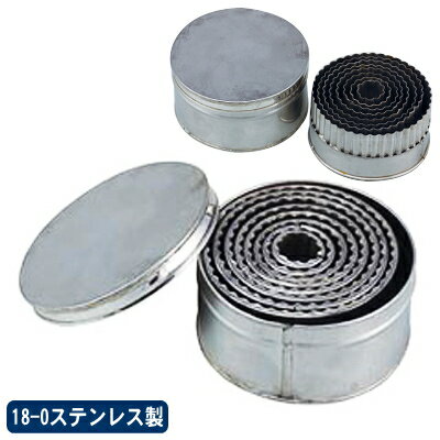 他の中華細工抜き型はこちら! 【商品仕様】 ●サイズ/缶のサイズ:約直径φ110×高さ55mm 各抜き型サイズ:約直径φ22/φ32/φ43/φ55/φ65/φ75/ φ85/φ95mm、高さ約51mm ●材質/18-0ステンレス製 ●8点セット ●中国製 ※メーカーに在庫がある場合は3営業日以内に発送させて いただきますが、稀に在庫がない場合もございますので、 お急ぎの場合はお問い合わせください。
