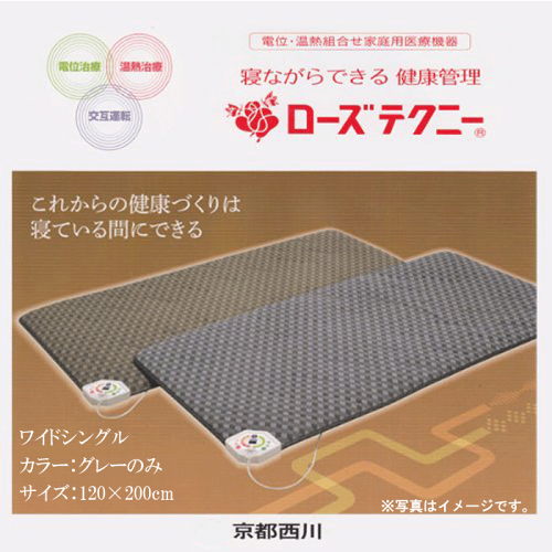 京都西川の寝ながらできる電位・温熱組合せ家庭用医療機器 ローズテクニーは、京都西川開発よって体質改善や血行促進などのお手伝いをする家庭用医療機器です。