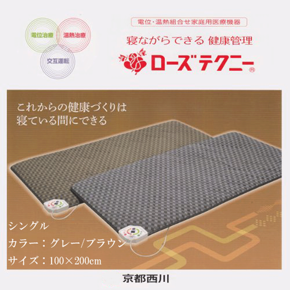 京都西川の寝ながらできる電位・温熱組合せ家庭用医療機器 ローズテクニーは、京都西川開発よって体質改善や血行促進などのお手伝いをする家庭用医療機器です。