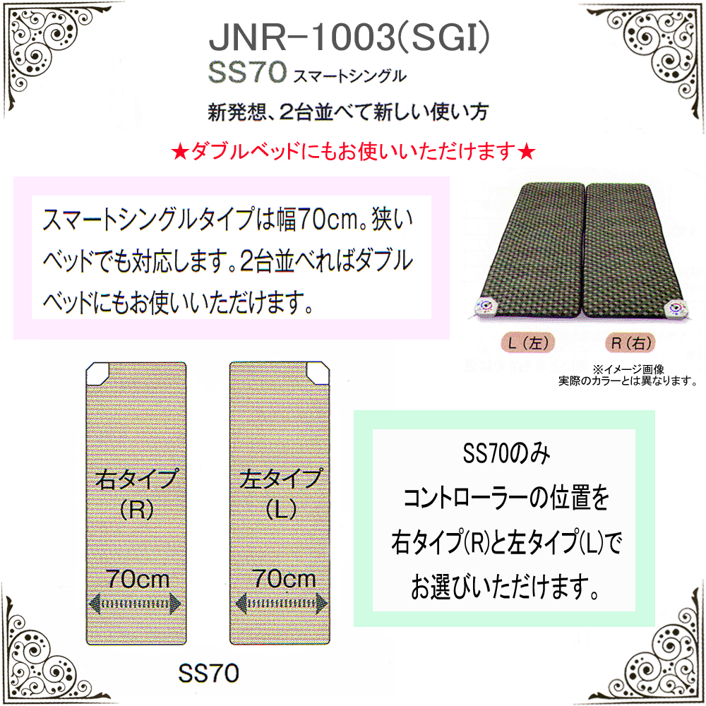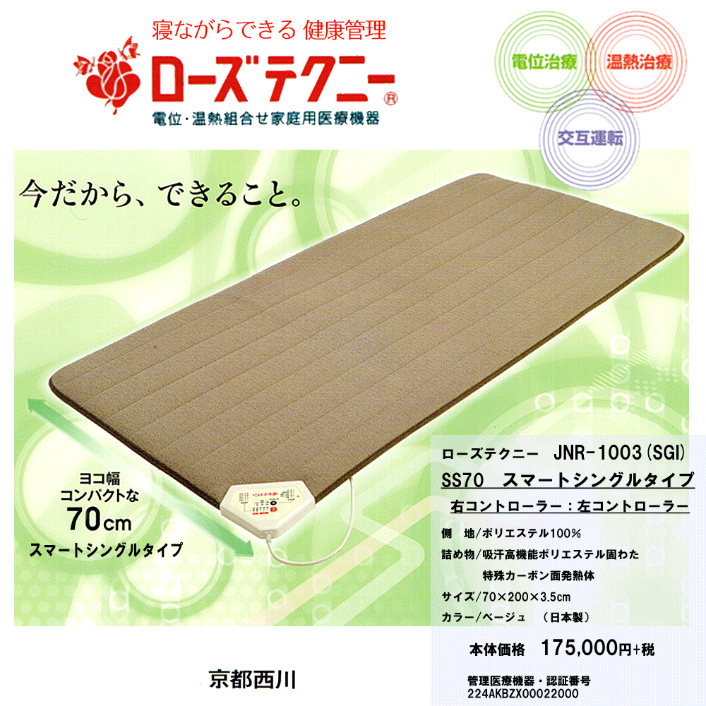 《4大プレゼント実施中》京都西川 ローズテクニー【JNR-1003-SS】スマートシングル約幅70x丈200x厚さ3.5cm【2台敷いてダブルサイズ対応】《専用カバー+除湿シート+敷パッド+ホテル仕様のバスタオル付》コントローラー左右あり選べます【日本製】