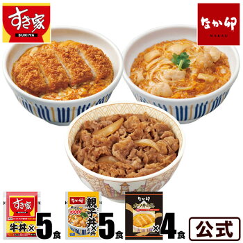 【期間限定】【送料無料】お試しコラボ3種セットすき家牛丼の具5パック×なか卯親子丼の具5パック×カツ丼の具4食冷凍食品 【S8】