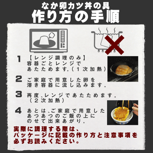 【冷凍】なか卯カツ丼の具4食入り((150g×2食)×2袋) 【商品説明】 [ポイント] レンジ加熱で簡単調理!鍋を使わず、レンジで加熱するだけでカツ丼の具の出来上がり!卵1個で、手軽にお楽しみいただけます。