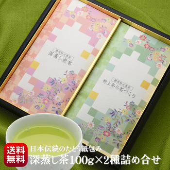 日本の伝統的な「たとう包み」健康を願う八十八夜摘み深蒸し茶2種詰合わせ深蒸し煎茶100g & 特上あら茶づくり100g